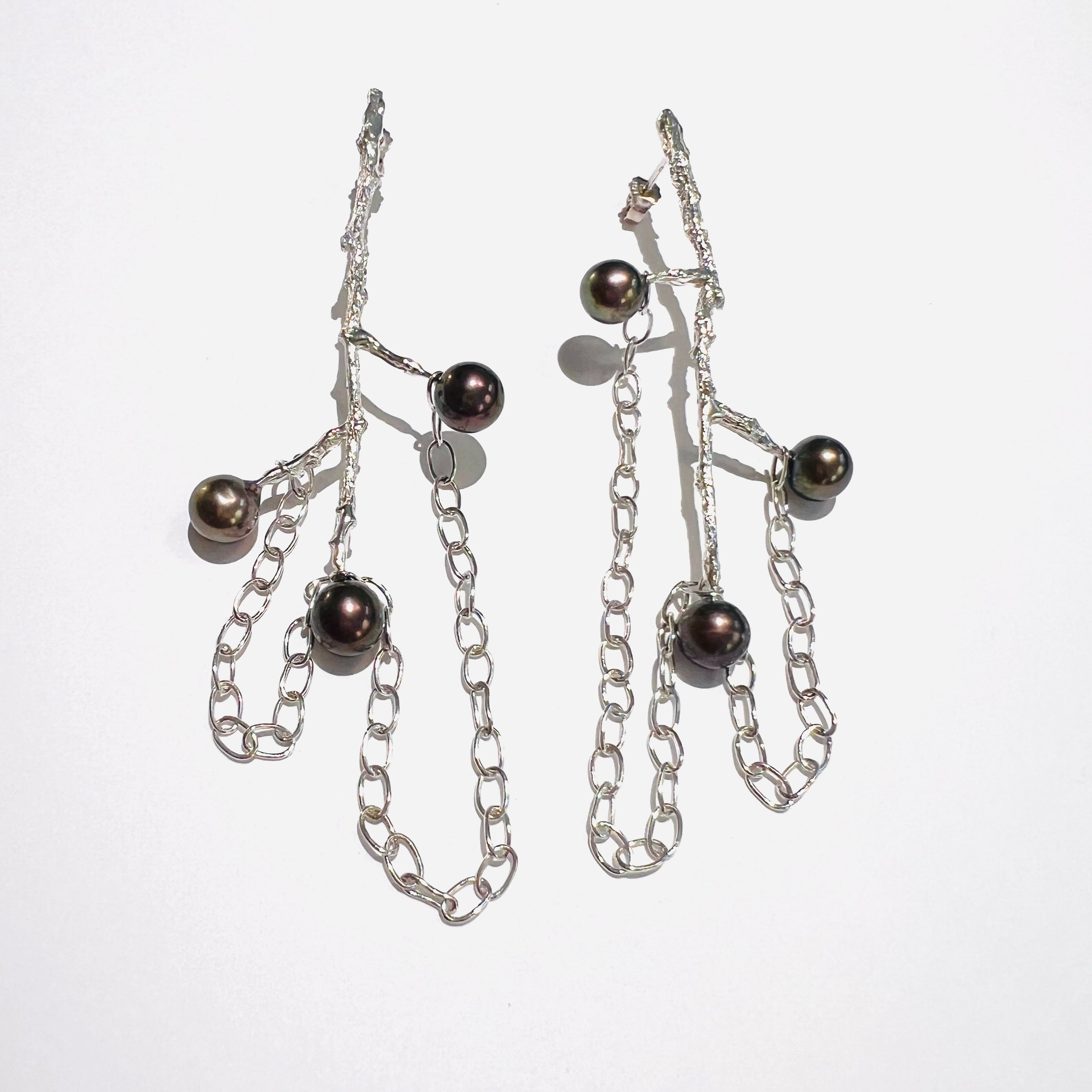 Ein Besonders Cooler Ohrschmuck aus 925 Silber und braunen Natur Perlen. An einem Ast baumeln fröhlich Silberketten bei jeder Bewegung und hauchen dem Zweig Beweglichkeit und Leben ein.. Edel und rockig zugleich wirkt dieser Ohrschmuck...