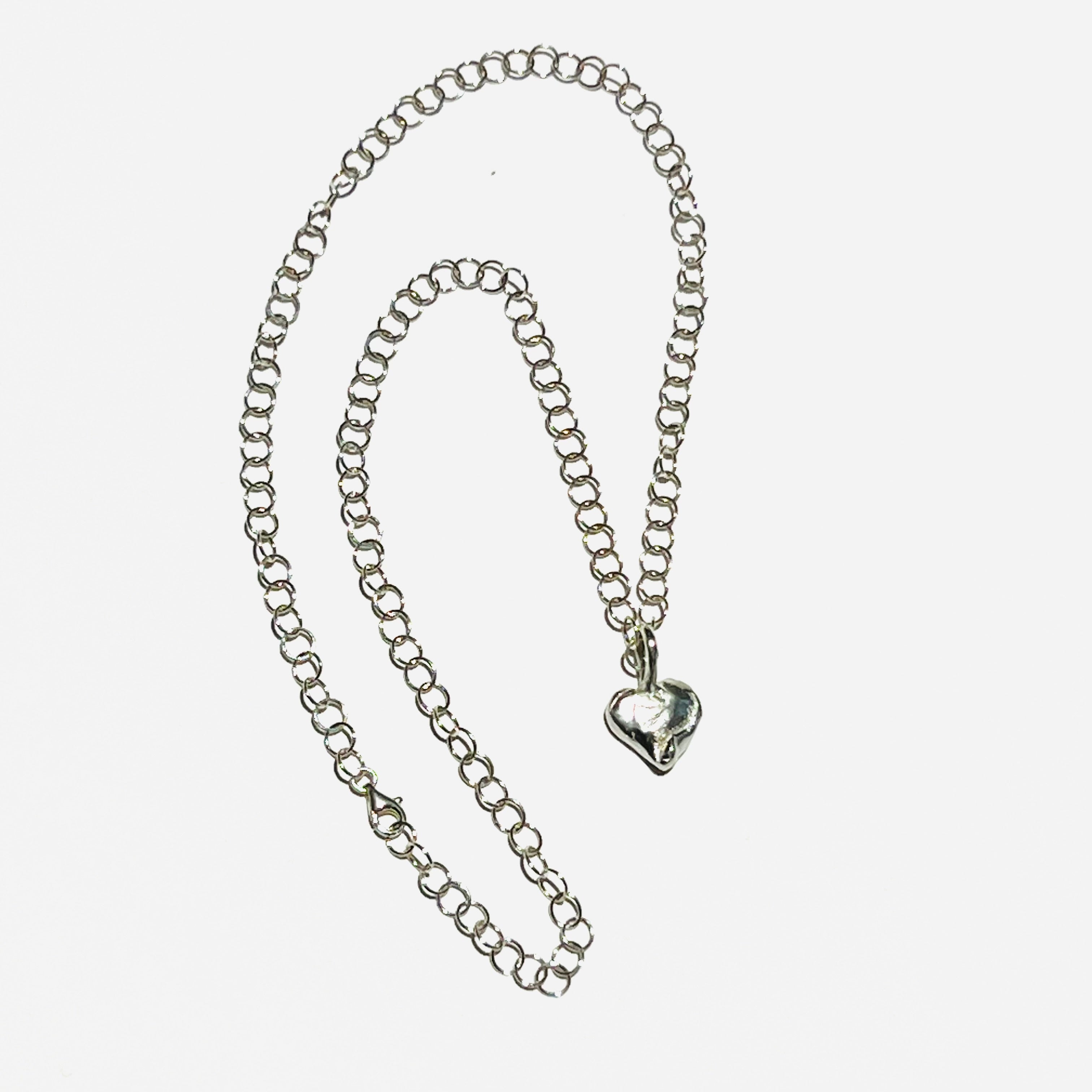 Eine sehr coole Herzkette mit einem schönen bauchigen massiv gearbeiteten Silberherz und einer filigraneren Rundankerkette.       Material: 925 Silber Länge:45cm   Dieses Schmuckstück ist ein Unikat – Handmodelliert und gefertigt von Marion Coma...
