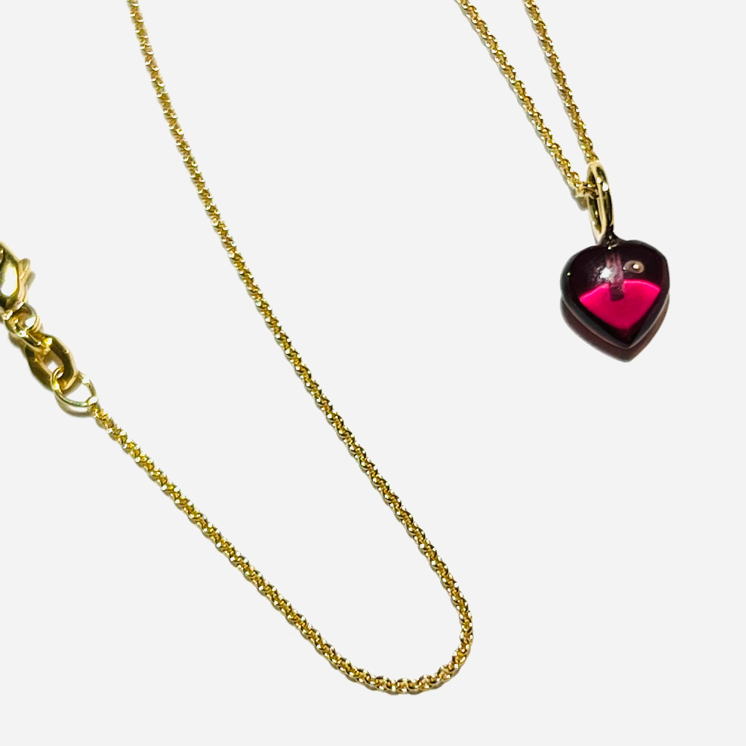Eine Goldkette mit einem wunderschönen Herzchen aus  Rubin gearbeitet..eine Kette für den absoluten Lieblingsmenschen der die ewige Liebe Symbolisiert!     Material: 750,- Gelbgold ,Rubin Länge: 42 cm Kette   Dieses Schmuckstück ist ein Unikat...
